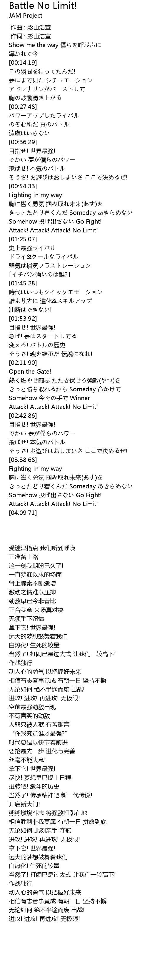 | [01:22.53] | Attack! Attack! Attack! No Limit! |