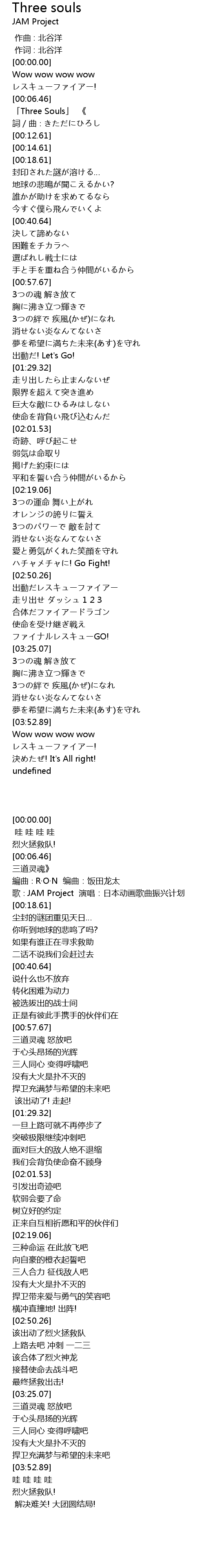 | [03:25.88] | 3つの魂 解き放て |