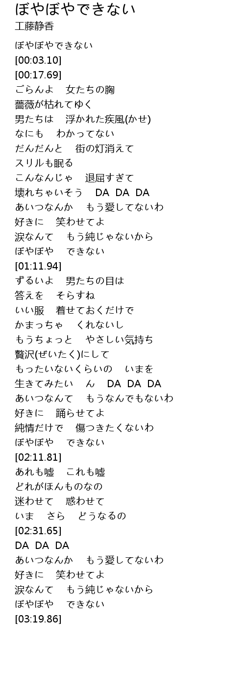 壊れちゃいそう DA DA DA |