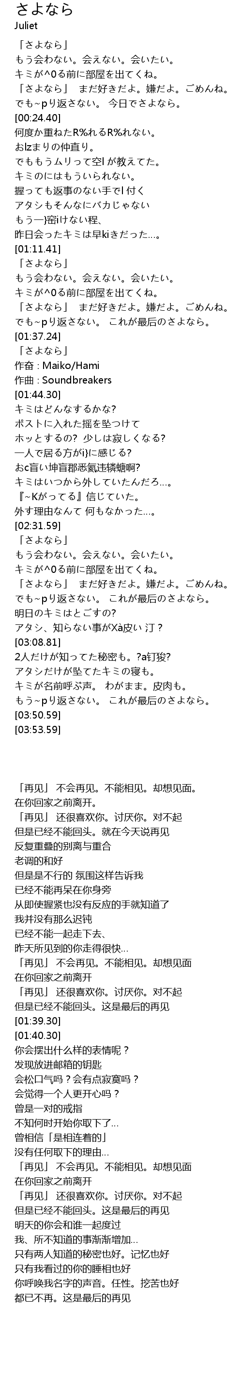 | [00:00.00] | 「さよなら」 もう会わない。会えない。会いたい。 |