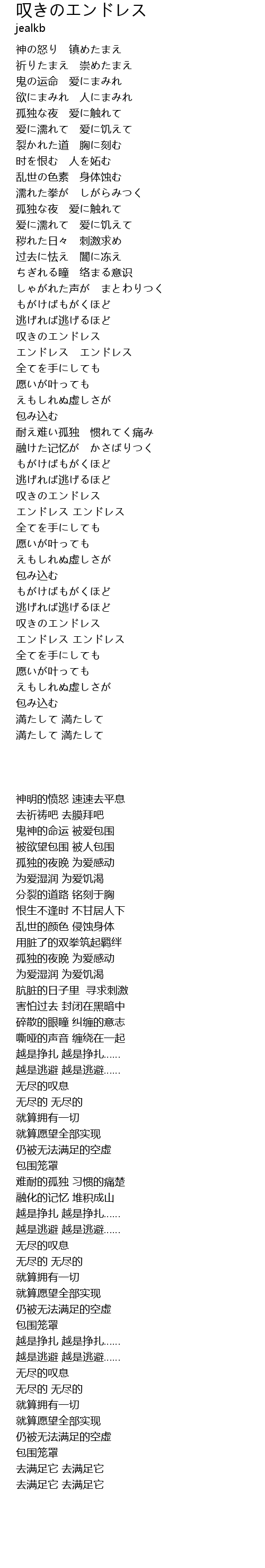 | [02:49.00] | 叹きのエンドレス |