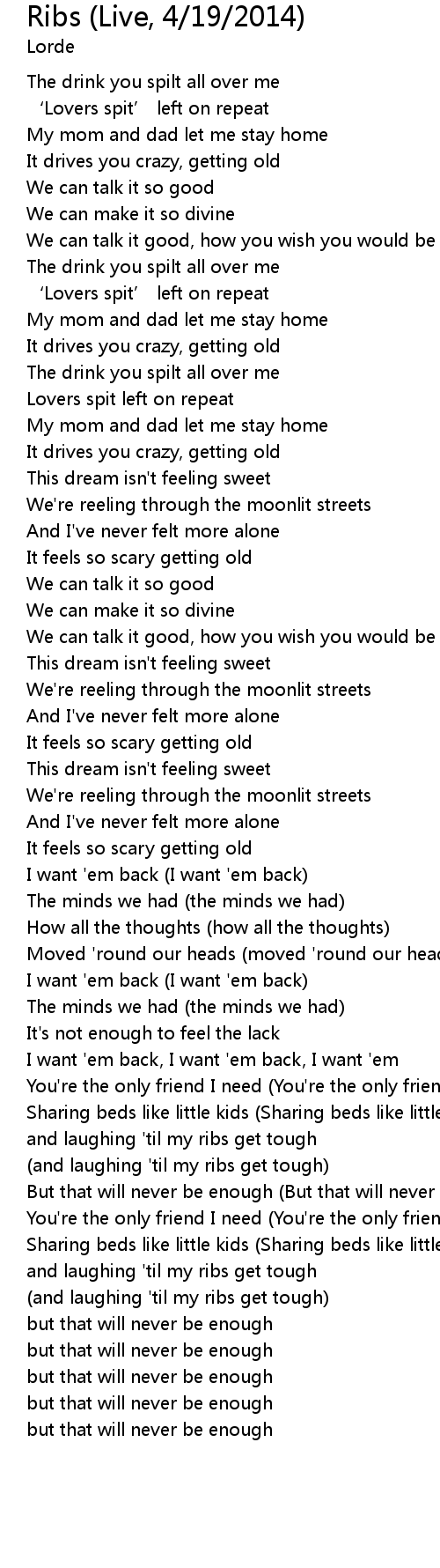 | [01:18.394] | ' Lovers spit' left on repeat |