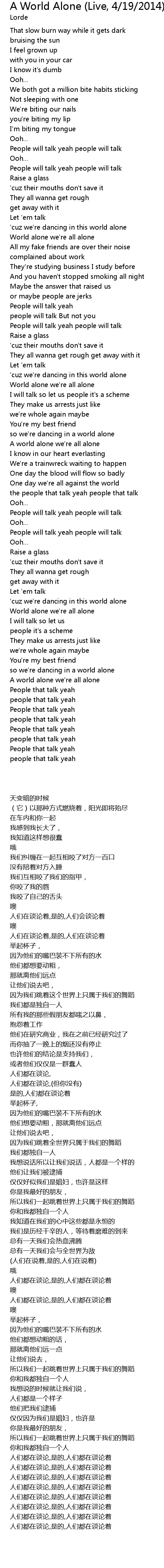 World alone we're all alone |