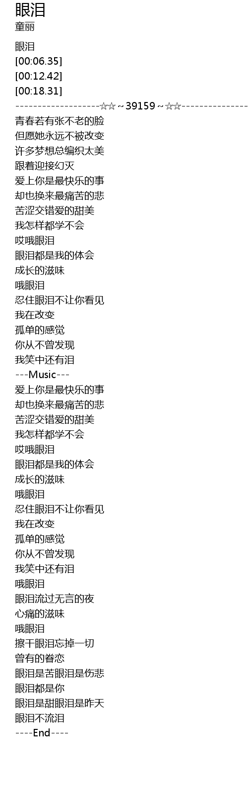 | [03:59.32] | 眼泪是甜眼泪是昨天 |