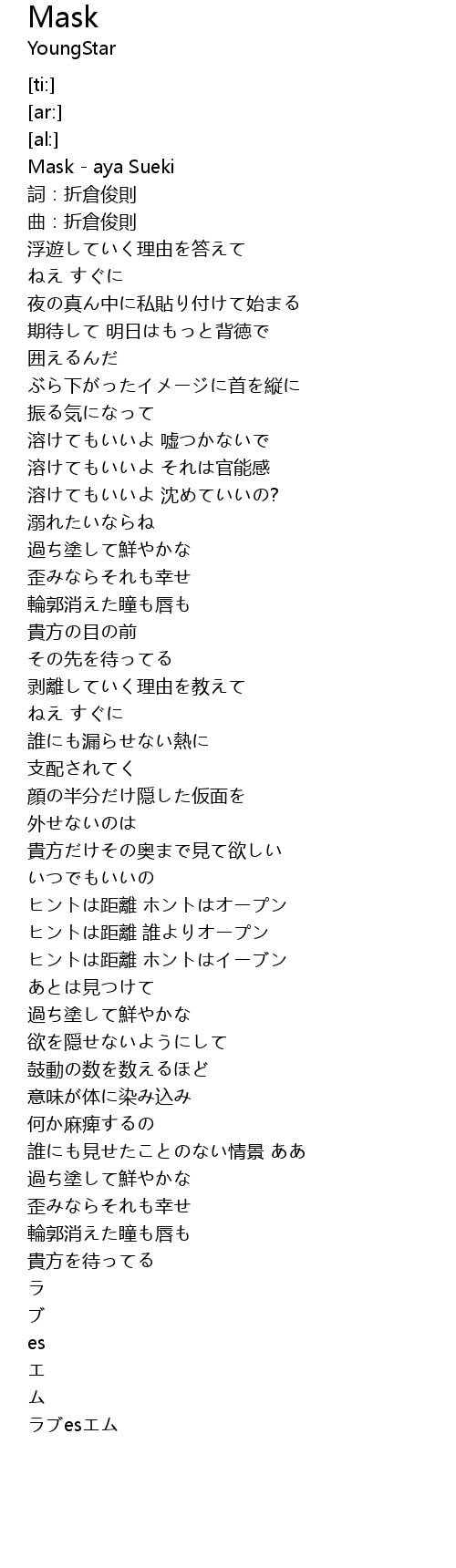| [00:02.92] | Mask - aya Sueki |