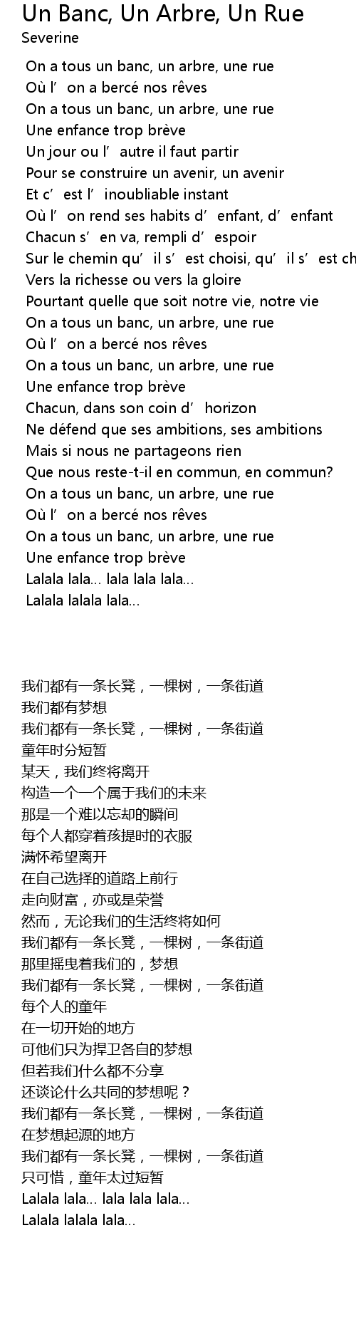 | [01:33.690] | On a tous un banc, un arbre, une rue |