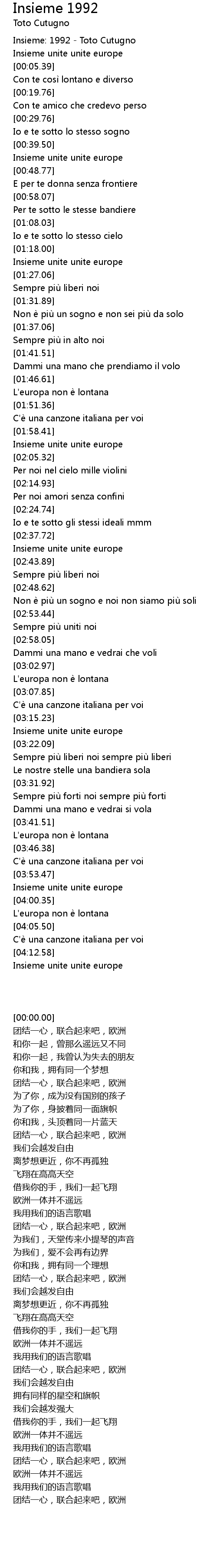 | [00:00.00] | Insieme: 1992 - Toto Cutugno |