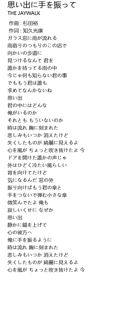 | Song | 思い出に手を振って |