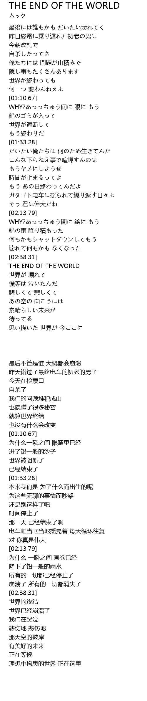 | [03:01.54] | THE END OF THE WORLD |