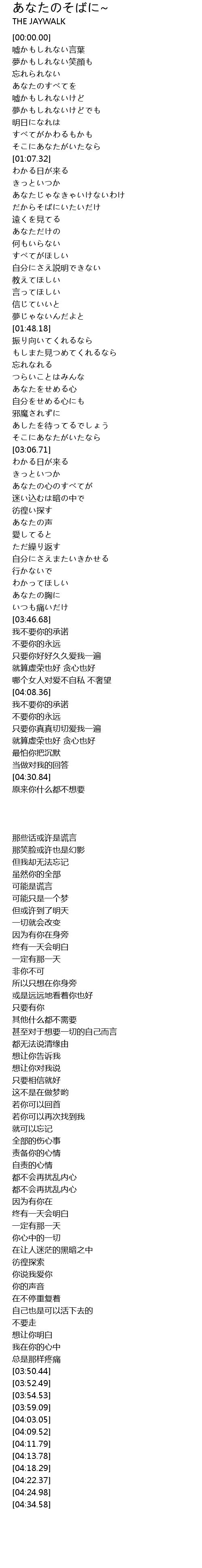 | [01:19.13] | だからそばにいたいだけ |
