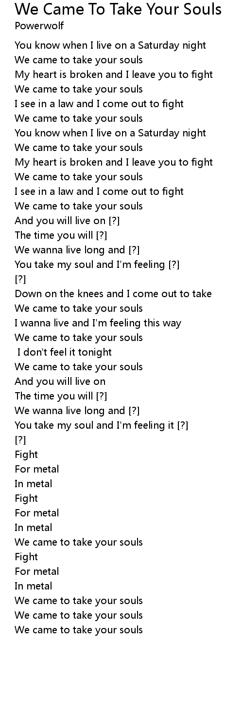 We Came To Take Your Souls Lyrics