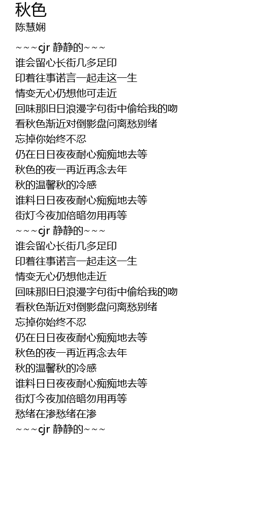 | [03:45.268] | qiū de wēn xīn qiū de lěng gǎn |