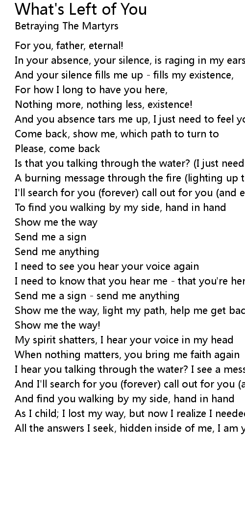 All the answers I seek, hidden inside of me, I am you, I am what's left of you |