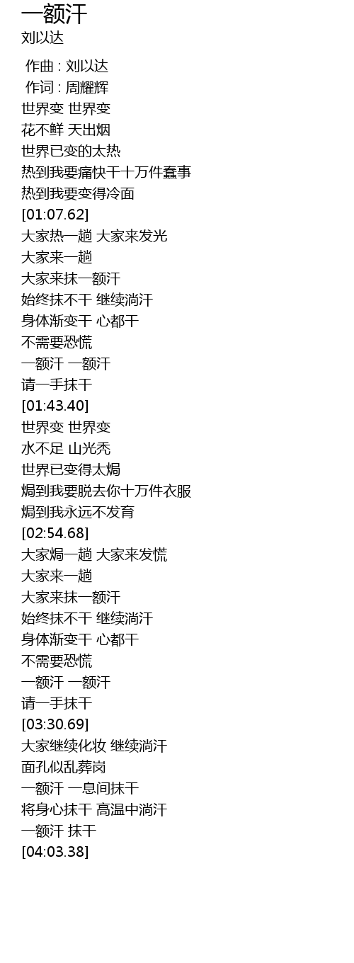 | [03:48.42] | 将身心抹干 高温中淌汗 |