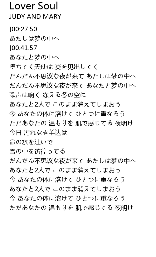 | [02:04.02] | 今 あなたの体に溶けて ひとつに重なろう |