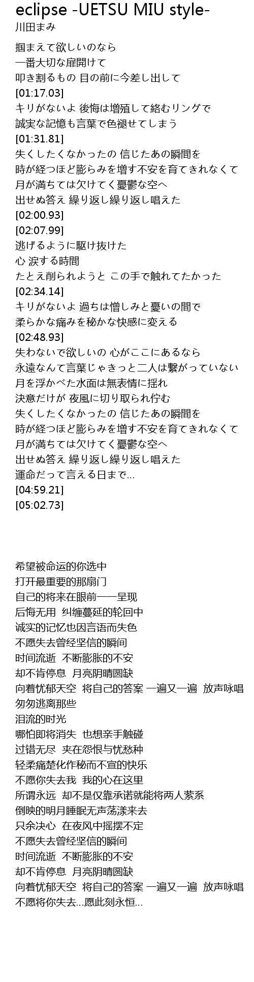 | [04:33.85] | 月が満ちては欠けてく憂鬱な空へ |