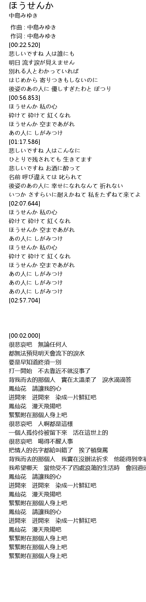 いつか さすらいに耐えかねて 私をたずねて来てよ |