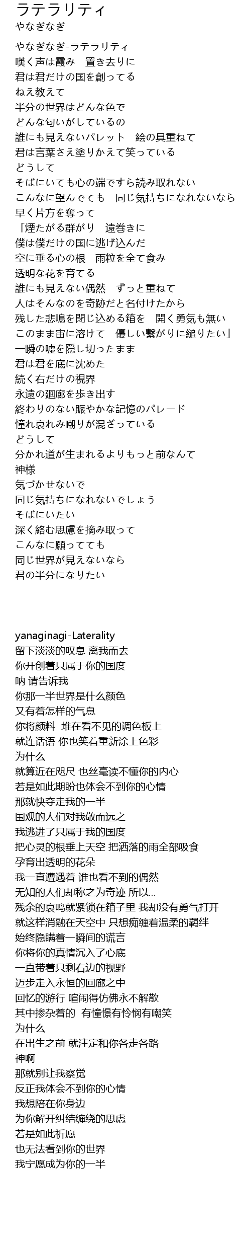 | [00:00.806] | やなぎなぎ-ラテラリティ |