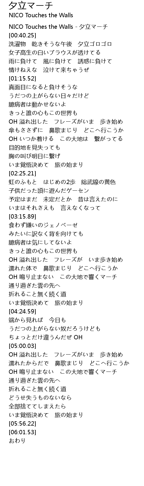 | [00:00.00] | NICO Touches the Walls - 夕立マーチ |