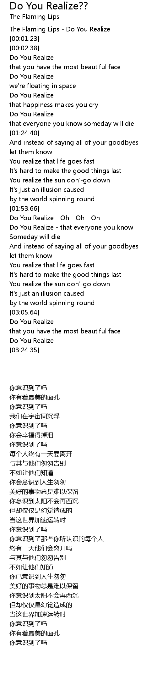 [01:58.08] Do You Realize - Oh - Oh - Oh