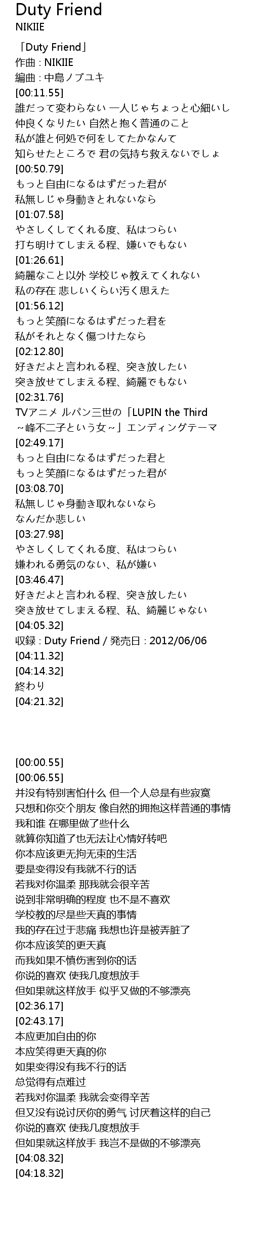 | [00:00.55] | 「Duty Friend」 |