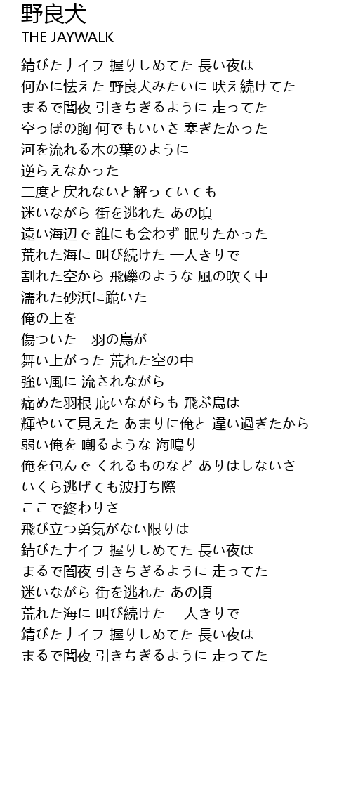 | 何かに怯えた 野良犬みたいに 吠え続けてた | |
