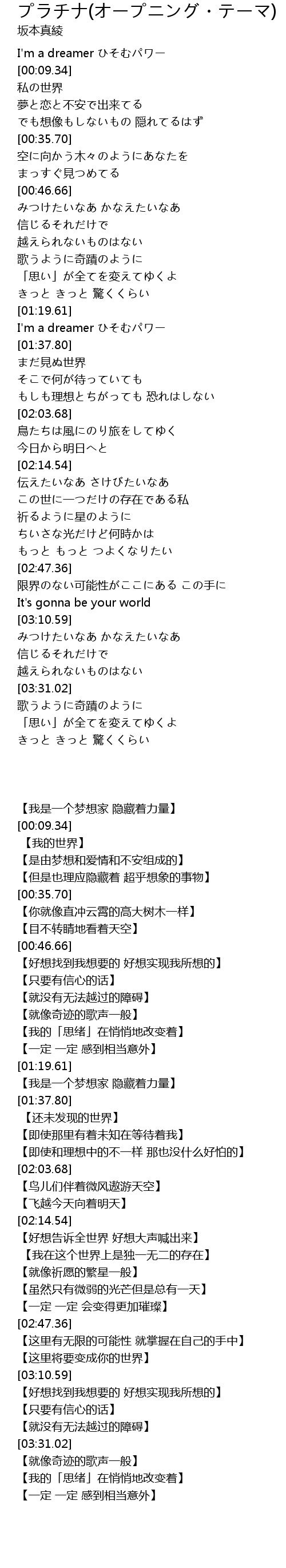 | [00:03.42] | I'm a dreamer ひそむパワー |