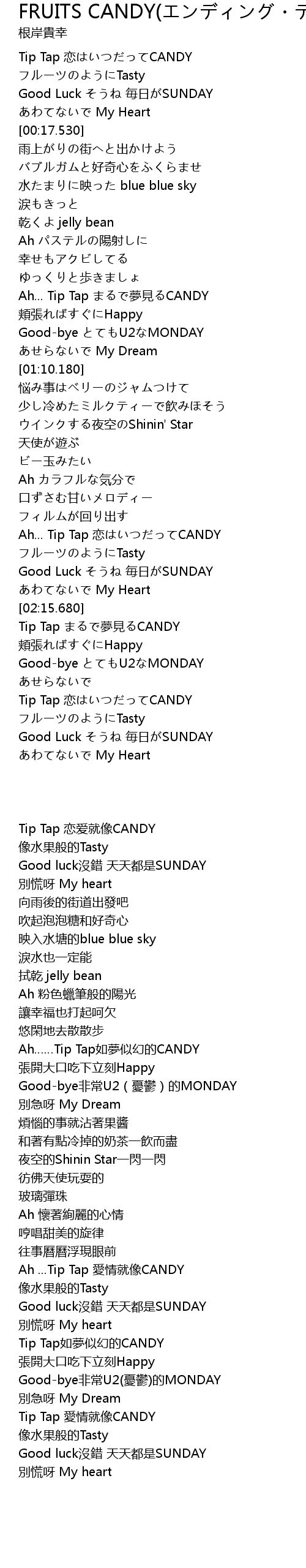 | [01:59.960] | Ah... Tip Tap 恋はいつだってCANDY |