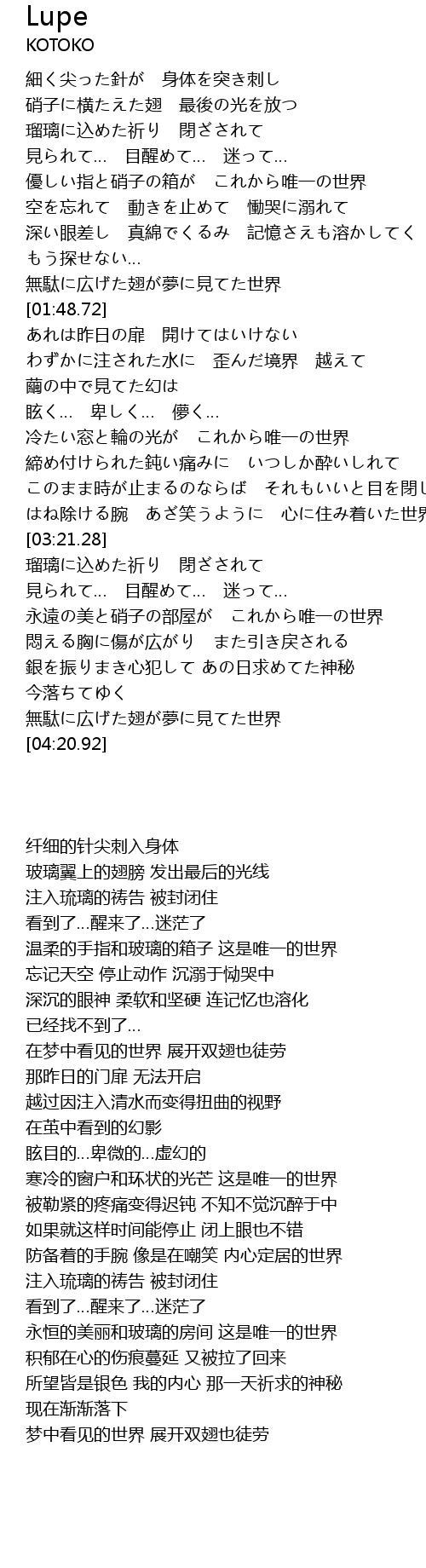 | [03:46.60] | 永遠の美と硝子の部屋が これから唯一の世界 |