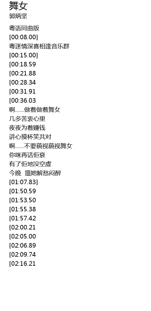 | [02:41.68][01:50.59] | 啊....... 世界无嗮舞女 |