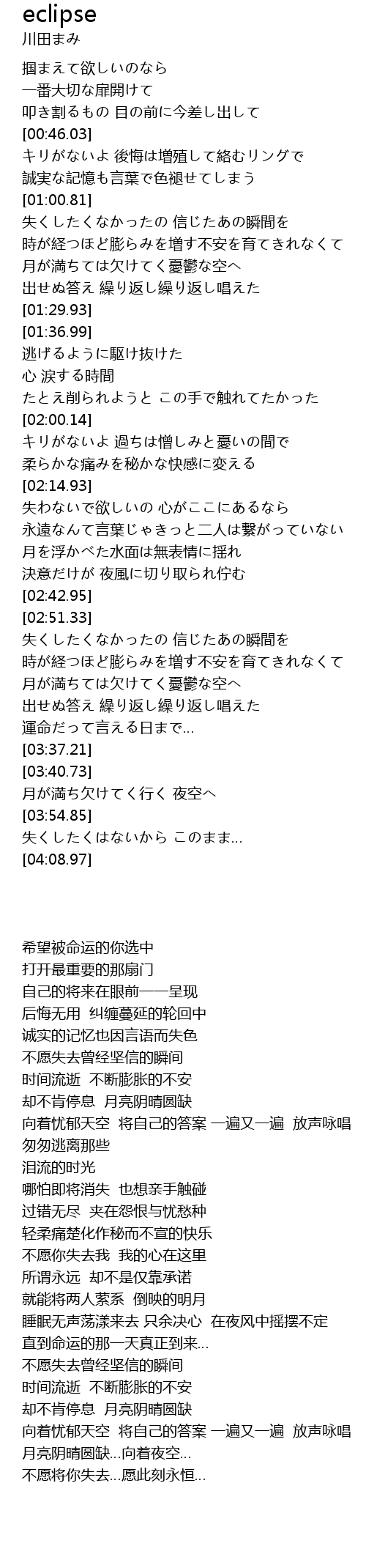 | [01:16.49] | 月が満ちては欠けてく憂鬱な空へ |
