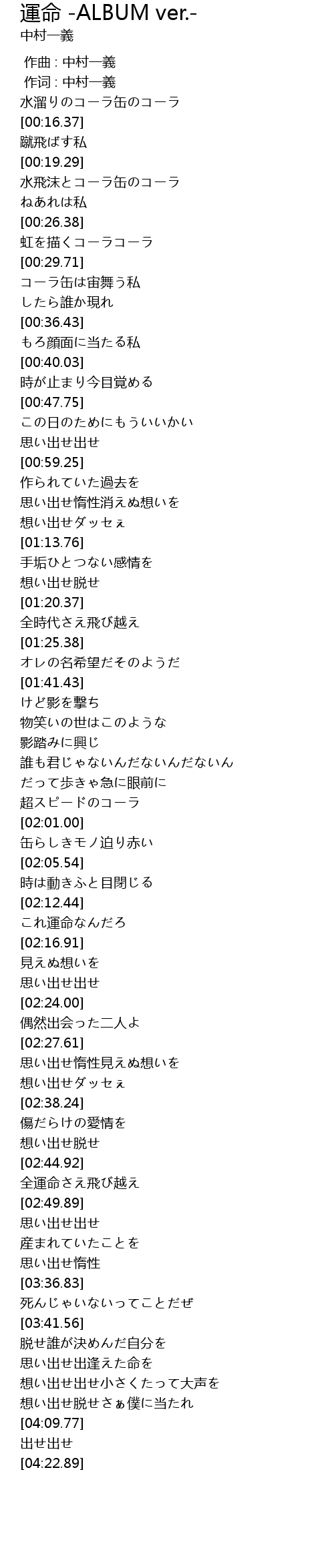 | [02:42.17] | 想い出せ脱せ |