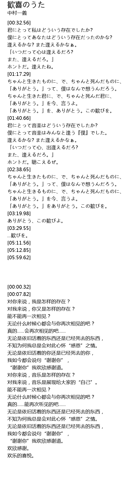 | [03:13.39] | 「ありがとう。」をありがとう。この歓びを。 |