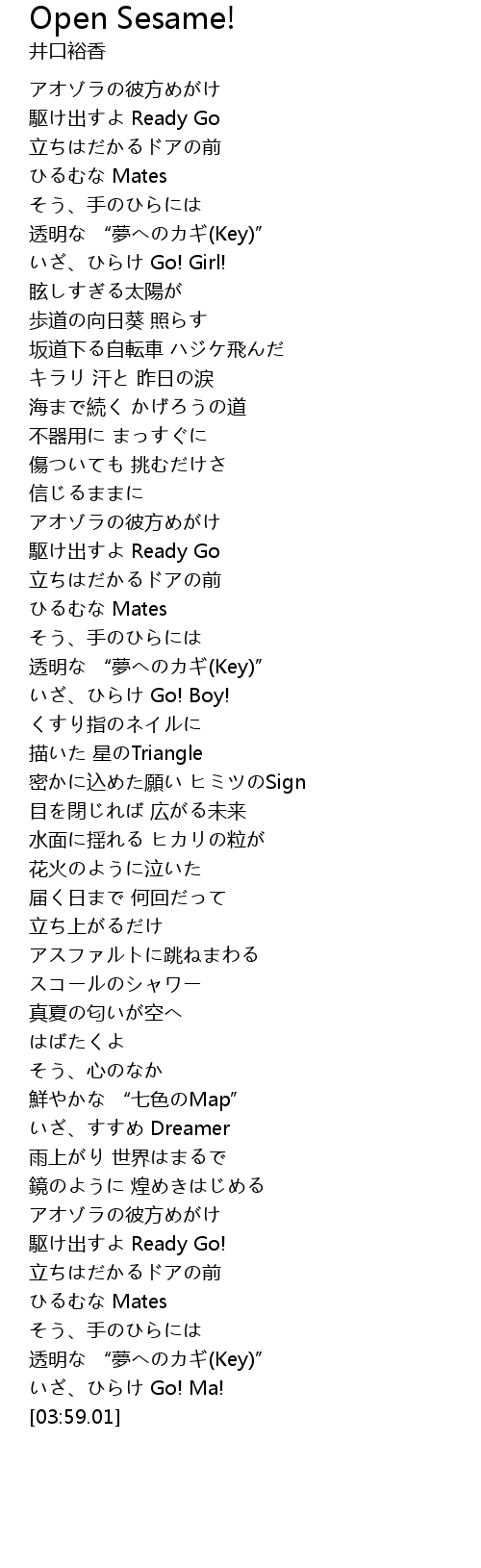 | [03:33.33] | いざ、ひらけ Go! Ma! |