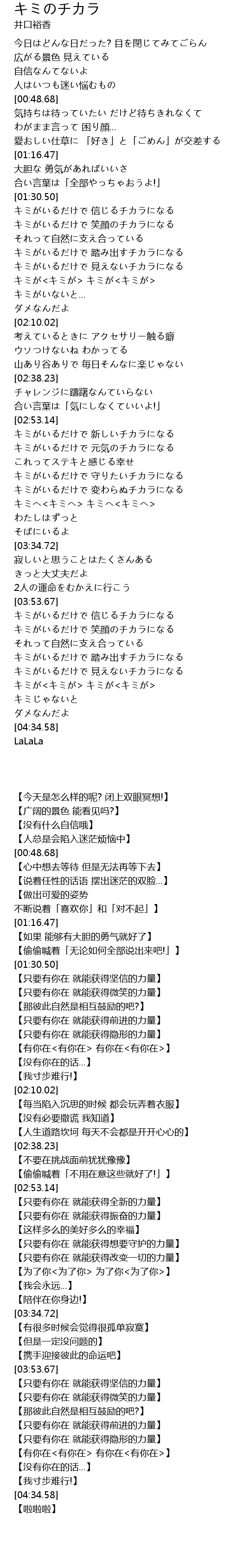 キミがいるだけで 変わらぬチカラになる |