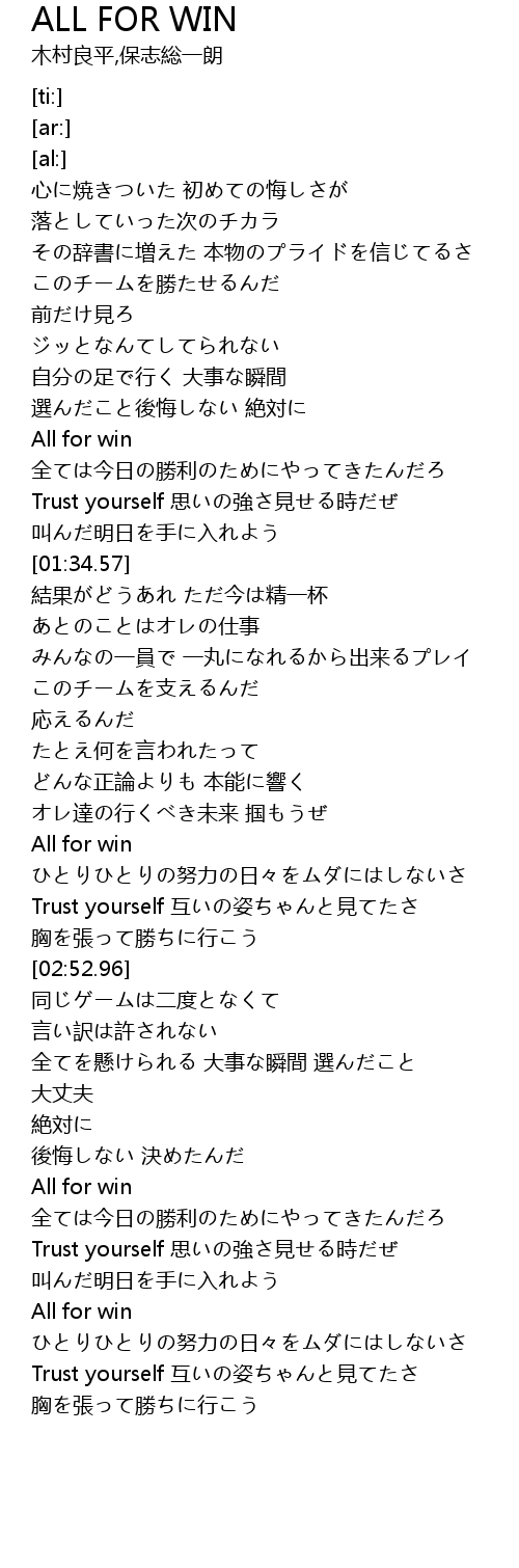 | [03:40.29] | All for win 全ては今日の勝利のためにやってきたんだろ |