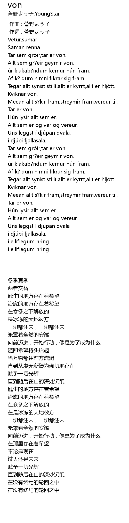 | [00:01.00] | 作词 : 菅野よう子 |