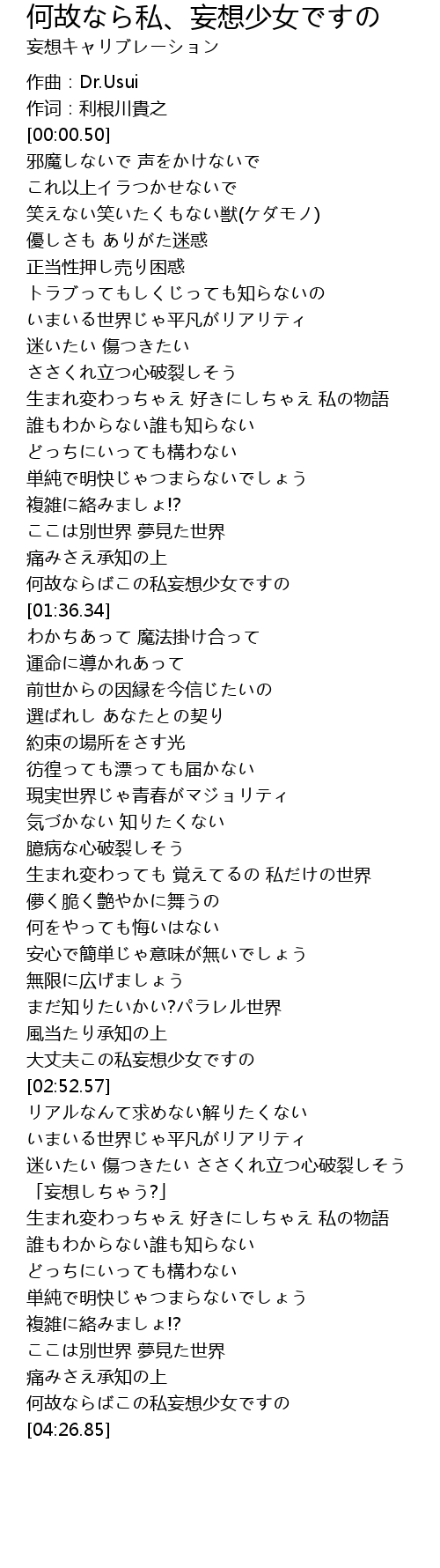 | [04:20.23] | 何故ならばこの私妄想少女ですの |
