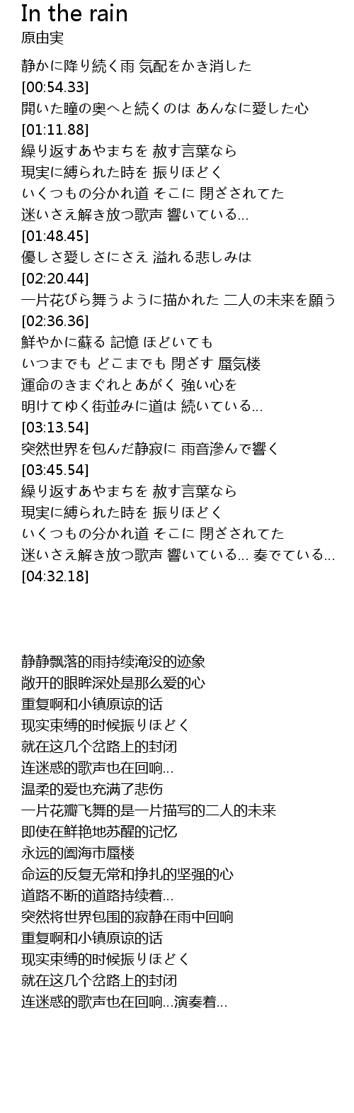 | [03:29.76] | 突然世界を包んだ静寂に 雨音滲んで響く |