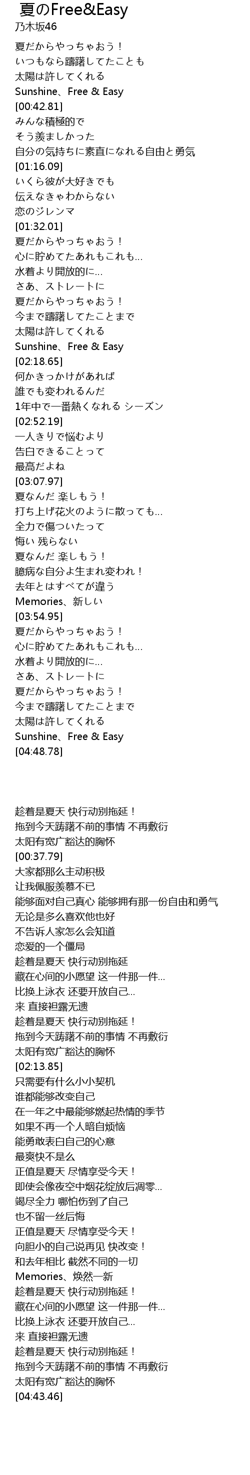 | [04:43.46] | Sunshine、Free & Easy |