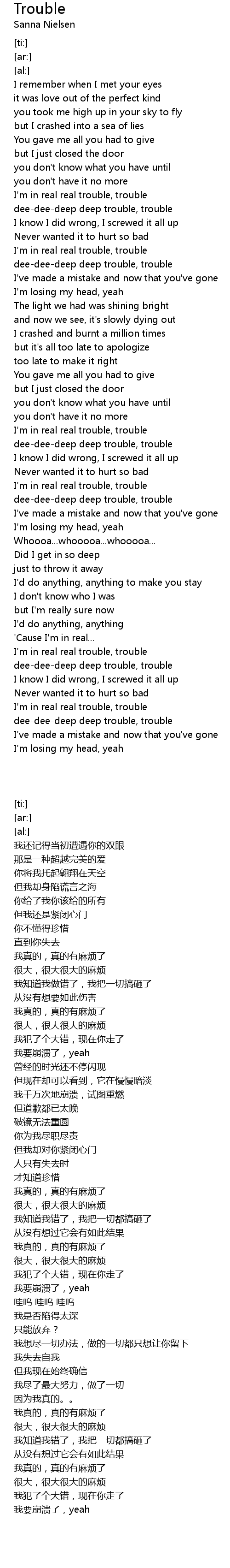 dee-dee-deep deep trouble, trouble |