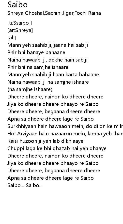 Apna sa dheere dheere lage re Saibo |