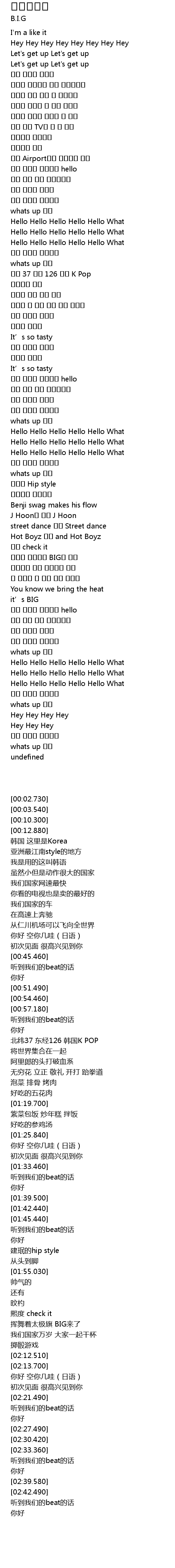 | [02:03.500] | 태극기 휘날리며 BIG가 왔네 |