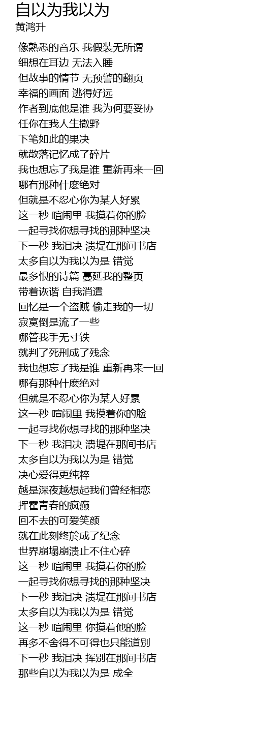 | [02:42.600] | tài duō zì yǐ wéi wǒ yǐ wéi shì cuò jué |