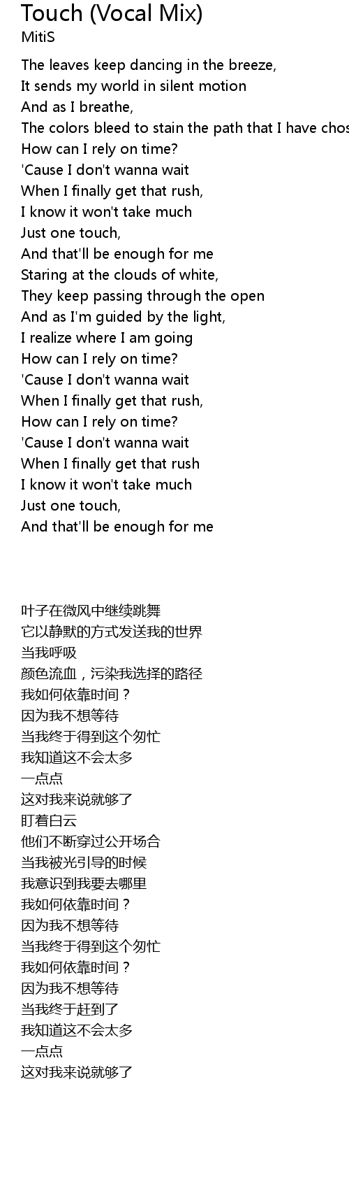 | [03:24.91] | 'Cause I don't wanna wait |
