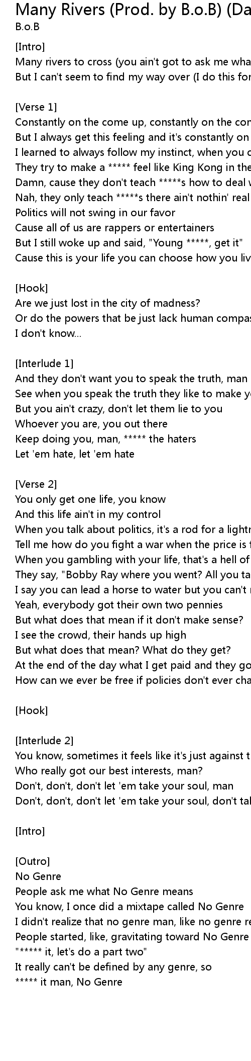 Many rivers to cross (you ain't got to ask me what I do this for) |