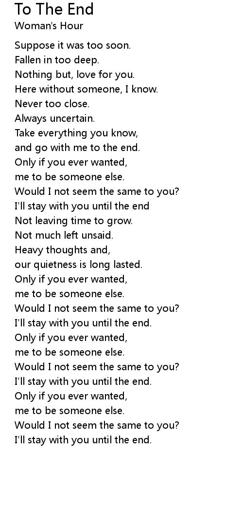and go with me to the end. |