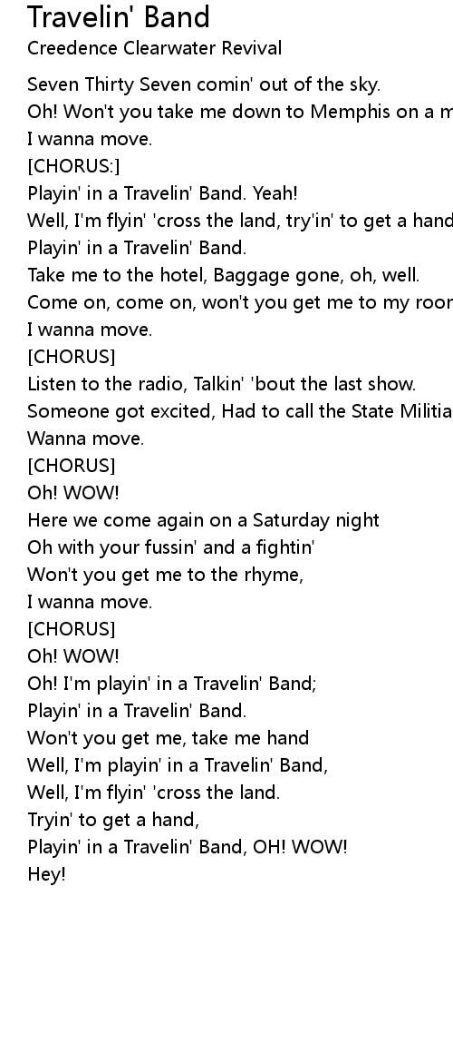 Oh! I'm playin' in a Travelin' Band; |
