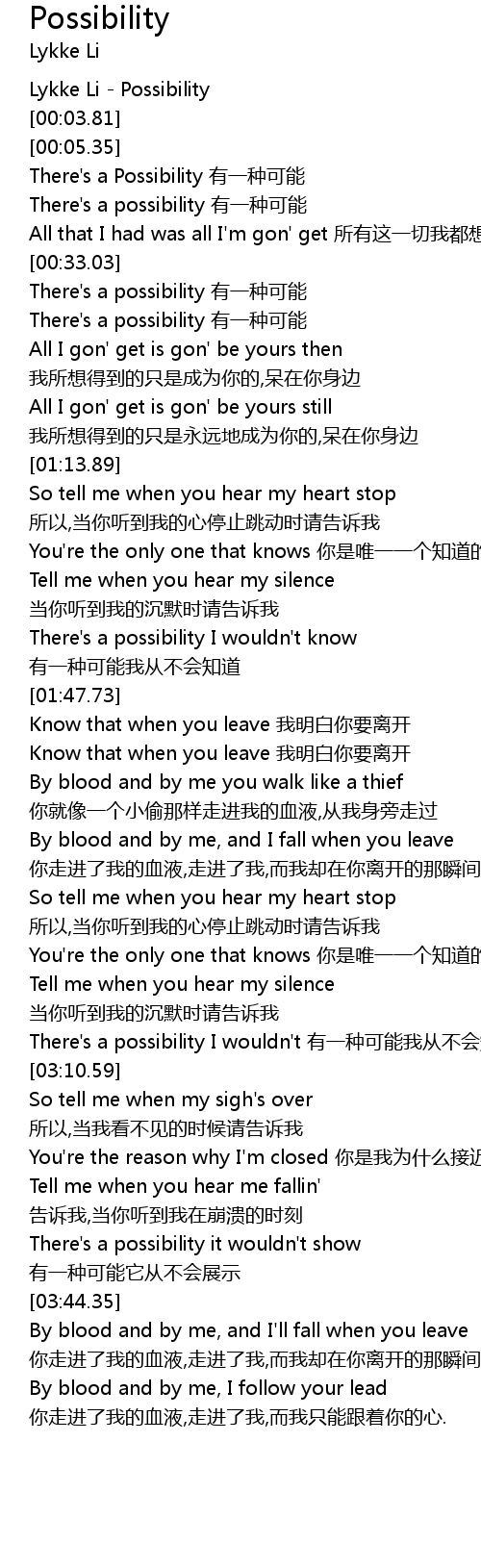 | [00:00.00] | Lykke Li Possibility |