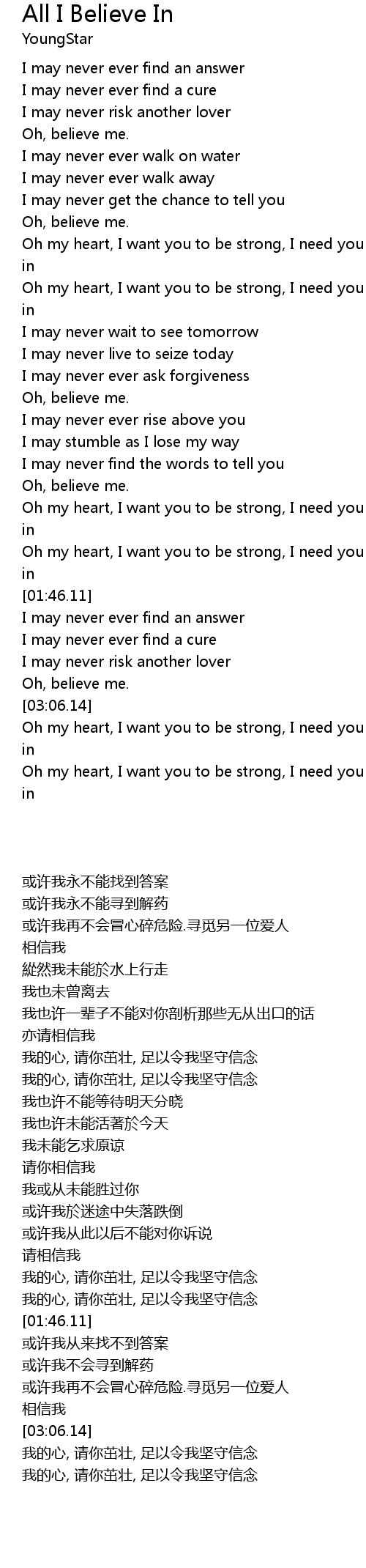 Oh my heart, I want you to be strong, I need you to be all I believe in |